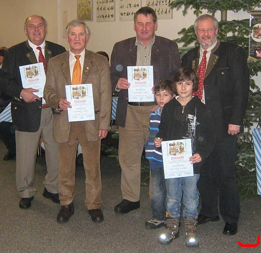 Bronzene Vereinsnadel überreicht von 2.Vors. Hermann Hacker an: Franz Zirngibl, Manfred Fischl, Jakob Hirtreiter und Thomas Betzinger (vertreten durch seine Jungs)