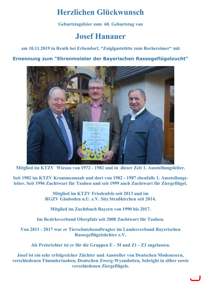 2019: Josef Hanauer 60. und Bay. Ehrenmeister