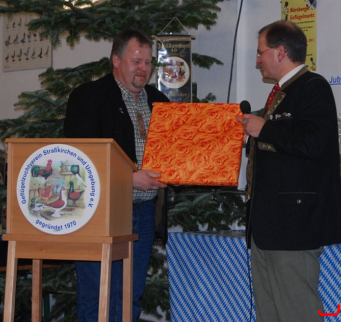 Markus Dengler, Bezirksjugendleiter, überbringt ebenfalls Grüße - und ein Geschenk (ist schon aufgehängt - ein Metallgickerl - am Eingang des Taubererstüberls - ist es nun ein Tauberer- und Gickerlstüberl?