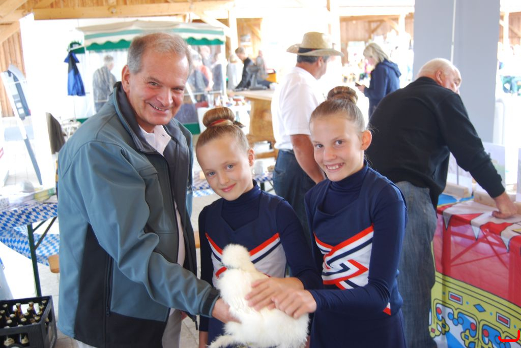 Die Mädels der Show-Tanz-Gruppe wären beinahe zu ihrer Aufführung zu spät gekommen, so sehr hatte es ihnen die softy-Henne angetan