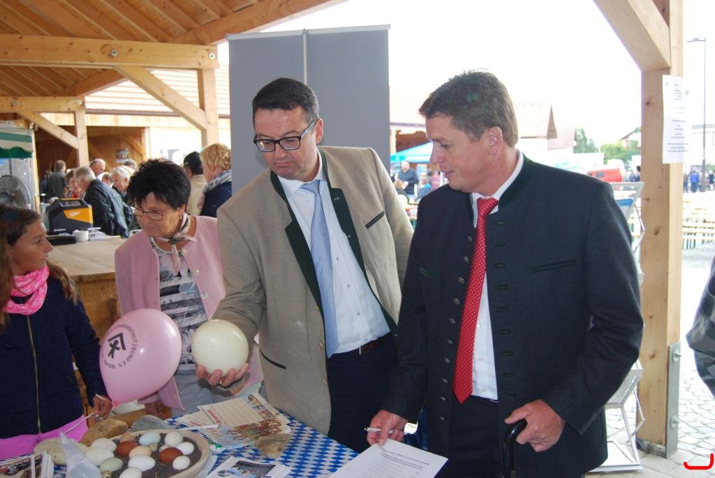 Bürgermeister Ewald Seifert holt sich Rat beim Leiter des Amtes für Ländl. Entwicklung Landau, wie schwer ist das Straußenei?